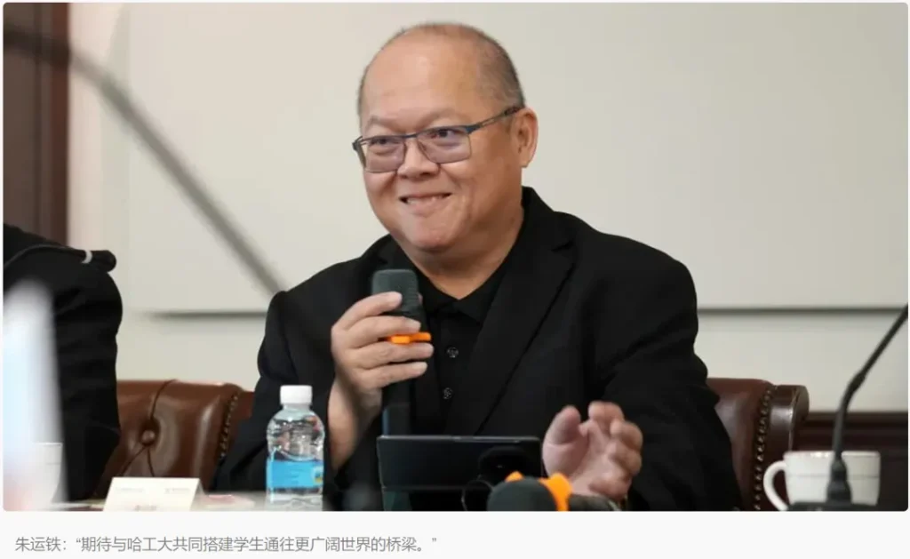 哈工大国际教育学院院务委员陈大庆致词表示,感谢朱董事长对哈工大的赞誉,他说,哈工大自1920年建校以来,不仅是首批“211工程”、“985工程”重点建设院校,也是“双一流”建设高校,目前在逾7万名学生中,来自世界各地留学生占9000馀人,其中200余名为马来西亚留学生。