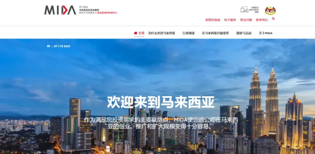 马来西亚投资发展局(MIDA)是官方招商引资平台,为外资企业提供投资指南、激励政策、产业报告等,是了解马来西亚营商环境的第一站。主要影响的行业有制造业、服务业、国际投资者。