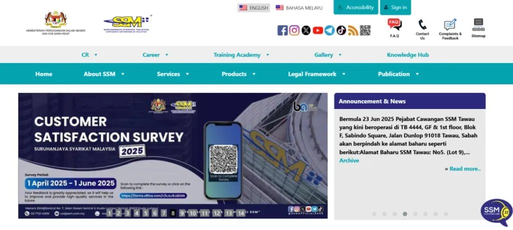 为提升办事效率,SSM 推出官方线上服务平台 eBIZ(www.ssm-einfo.my),企业与个人用户可通过平台快速完成公司注册、商业变更、年报提交等操作,极大提升注册便利性与流程时效。