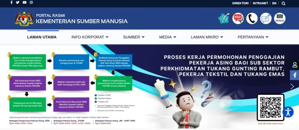 马来西亚人力资源部(MOHR)是主管全国劳工、就业、技能培训与劳资关系的政府机构,下辖多个关键职能单位,包括劳工局(JTKSM)、社会保险机构(PERKESO)、人力资源发展公司(HRD Corp)等。若企业在马来西亚雇佣本地员工、缴纳社保、进行工伤申报或参与雇主培训计划,均需参考 MOHR 相关政策与在线服务系统。