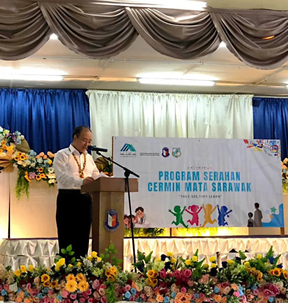 欧阳玉靖大使代表中国驻马使馆向沙捞越学生捐赠近视眼镜