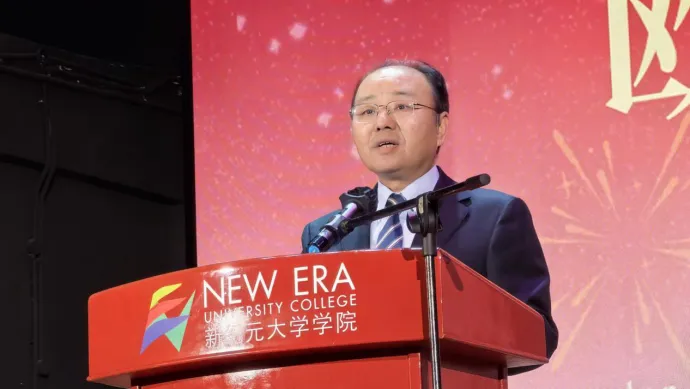 12月9日,欧阳玉靖大使出席新纪元大学学院“中国大使奖学金”颁奖典礼并致辞。新纪元大学学院校长莫顺宗和师生代表等200余人参加活动。