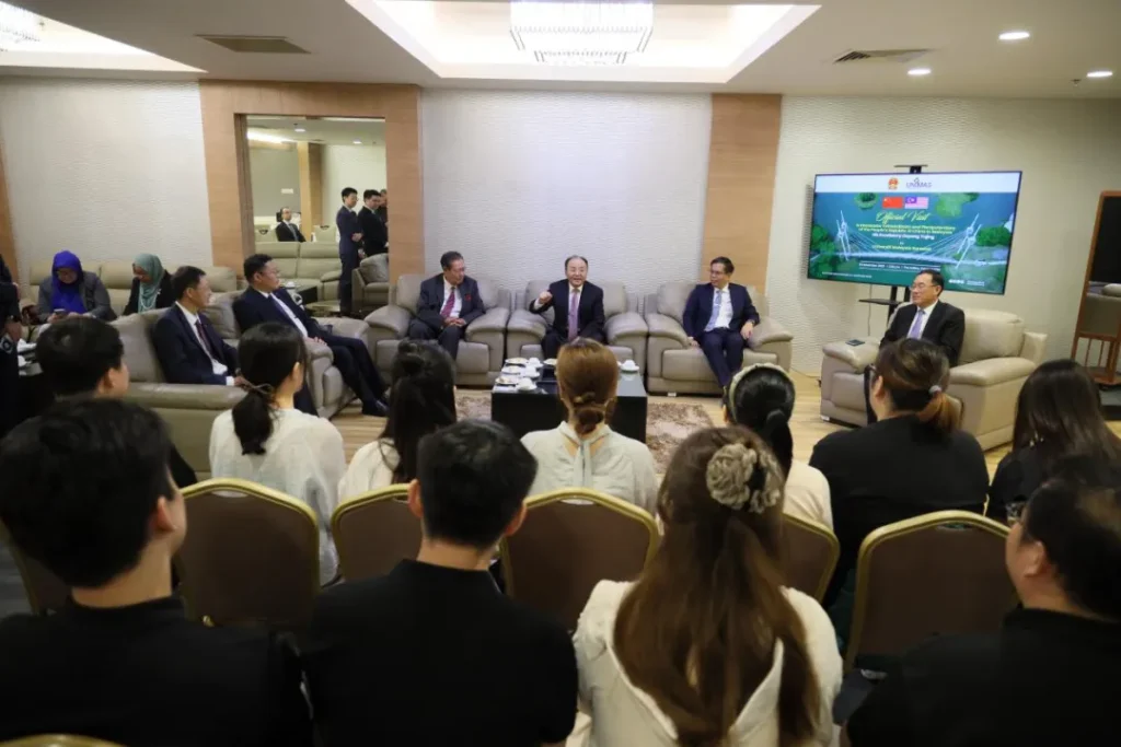 最后,欧阳大使一行与中国留学生代表座谈交流,勉励同学们成为中马友谊的见证者和参与者,为中马世代友好做出积极贡献。