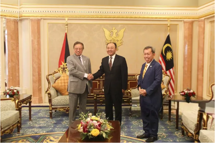 11月24日、25日,欧阳玉靖大使在古晋分别拜会马来西亚沙捞越元首旺朱乃迪和总理阿邦佐。驻古晋总领事邢伟平等陪同。欧阳大使介绍了中马关系最新进展,表示今年4月习近平主席成功对马进行国事访问,双方确立了高水平战略性中马命运共同体的新定位。当前,中马政治互信不断深化,经贸合作不断拓宽,人文交流愈加频密。中方企业融入沙经济社会发展,打造了一批切实惠及沙民众的民心工程。中方将继续鼓励企业赴沙投资兴业,深化双方在基础设施、绿色能源、教育等领域合作,不断拓展互利共赢新空间。