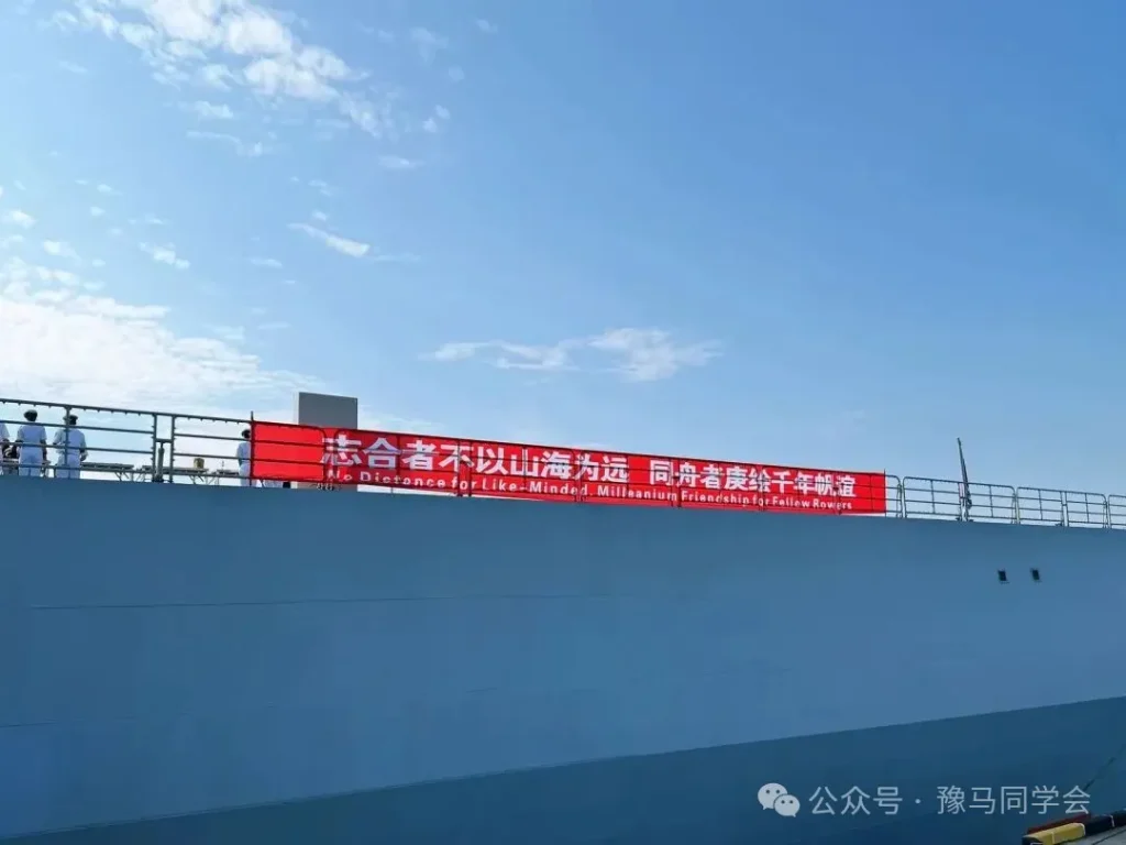 河南旅马同学会会长李师毅、副秘书长曹润锋、郭东良及多名同学会代表出席活动。在现场工作人员的引导下,代表团依次登上“长白山”舰与“郑和”舰,参观了任务指挥区、教学训练设施、生活舱室及文化展示区域,全面了解中国海军在远洋训练、国际交流和综合保障等方面的建设成就。