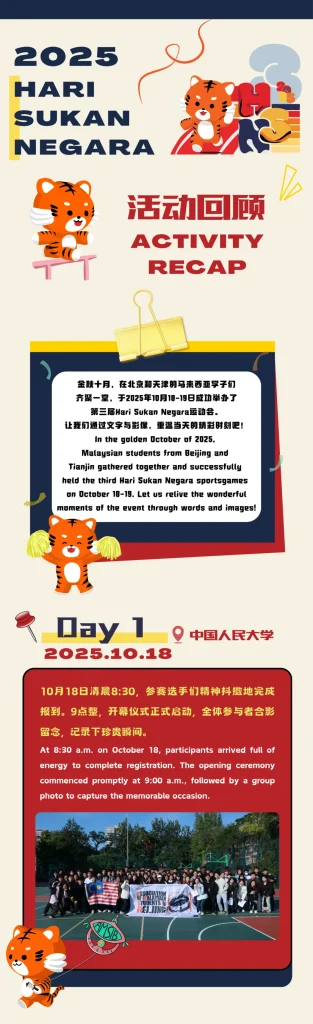 2025年11月23日 活动回顾|第三届 “HARI SUKAN NEGARA” BEIJING 2025活动回顾|第三届 “HARI SUKAN NEGARA” BEIJING 2025 马来西亚留学北京学生会AMSIB该平台旨在促进马来西亚留学北京学生之间的联系,增进彼此的友谊;协助马来西亚留学北京学生解决在京生活、学习等方面的问题;提供留学北京各院校的相关资讯;增强与其他相关团体、机构的联系。 马来西亚驻华大使馆教育处阅读原文
