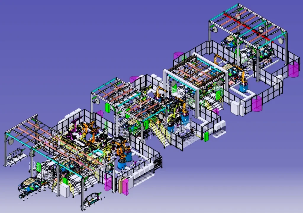 根据马来西亚INGRESS公司要求,该解决方案从承接到交付时间仅半年,涵盖主线、地板线、侧围线、机舱线、前地板线、后地板线、四门翼子板线等车身智能制造生产线。该项目创新点在于,采用了瑞松科技自主研发的数字化平台RIDP、RMC机器人控制系统,以及涂胶视觉、在线视觉检测等基于人工智能算法的先进前沿技术,保障新能源汽车生产品质;同时配备多达64套自主研发多轴NC定位高端装备,确保产线高柔性使用。