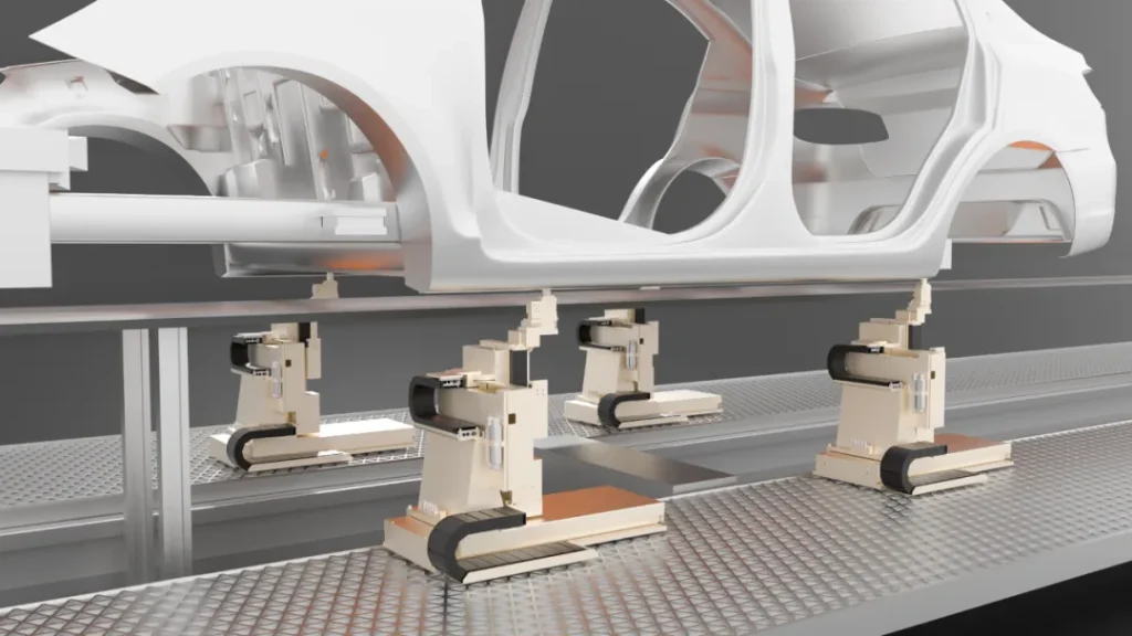 公司自主研发的RMC机器人控制系统,是一种高柔性、高移速、可编程、高精度、重复性好的伺服电机和模组组成的装置,能够对多种零件实现准确定位的柔性机构,适用于焊装车间各工程高节拍、多车型、柔性化共线生产。支持模块化定制,适合高要求定位场景,适应多平台、多车型生产,能快速响应车型变化。