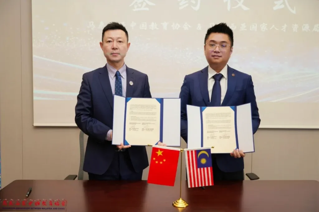 大会随后进入合作成果集中呈现阶段。马来西亚中国教育协会与马来西亚国家人才资源局举行了合作签约仪式,在人才培养、实践基地建设等方面达成了一系列共识。