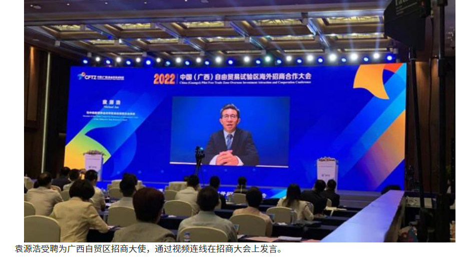 袁源浩在会上表示,广西是我国企业的福地,也是机遇之地。上述活动是由中国商务部投资促进局、广西自治区商务厅、中国(广西)自由贸易试验区工作办公室联合主办。