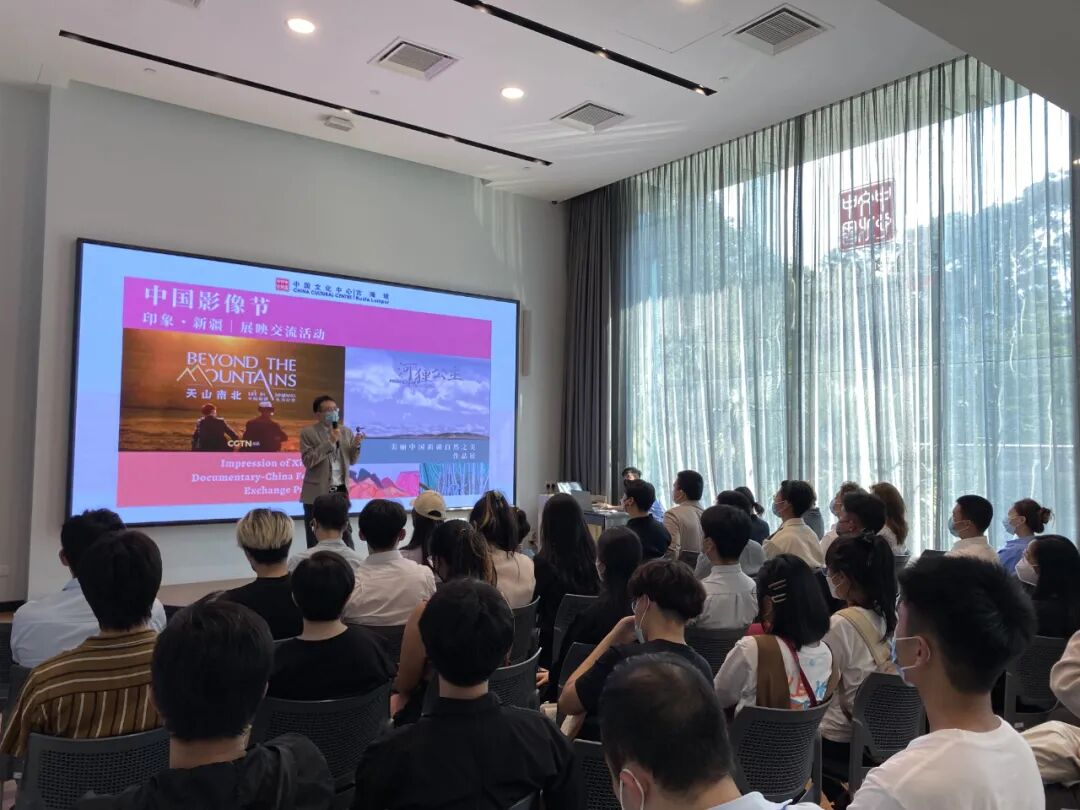 主持人为学生们介绍《天山南北——中国新疆生活纪实》专题纪录片吉隆坡中国文化中心主任张杰鑫表示,文化中心今年举办“中国影像节”,聚焦“中国这十年”主题,通过展映10多部记录中国减贫脱贫、环境保护、乡村教育、抗击疫情、防汛减灾,以及文化、历史、旅游、美食等一批精品专题片,全景式展现中国近十年来的发展变化。这些影片既有讲述普通人物故事,也有展示极致影像中的色彩中国,相信能够让大马民众感知中国温度,了解中国的发展变化,进而加深相互认知和传统友谊。