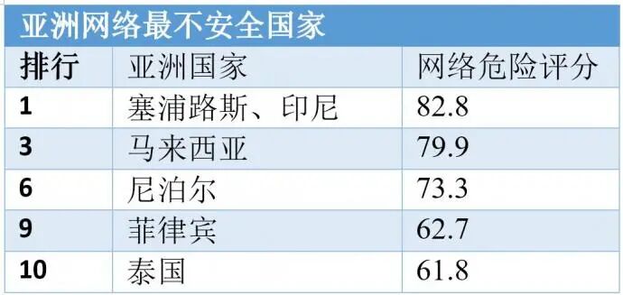 亚洲十大网络不安全国,大马名列前三