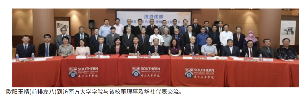 欧阳玉靖今日上午莅访南方大学学院与该校董理事交流,致词时这么指出。