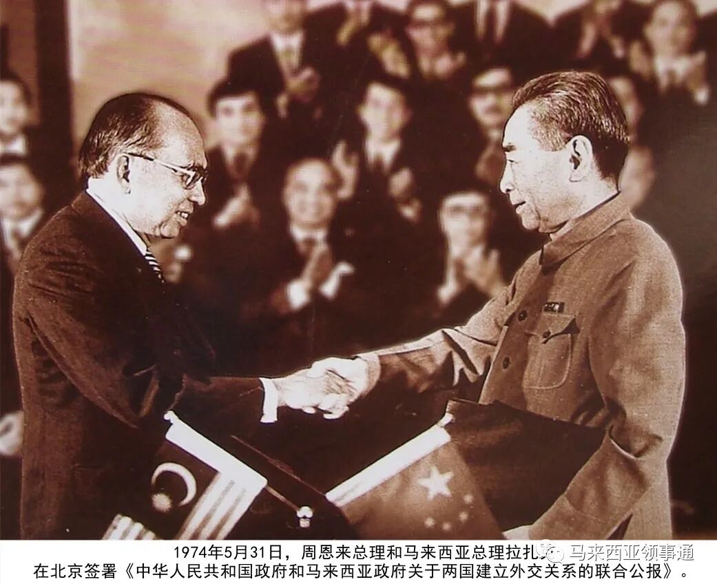 1974年5月31日,周恩来总理同拉扎克总理共同签署了中马联合公报,马来西亚在东盟国家中率先同中国建立外交关系,翻开了中马关系发展历史新篇章,也开启了中国与东盟国家关系的新纪元。47年来,两国高层往来密切,各领域交流合作成果丰硕,两国人民友谊不断升华。中国期待同马来西亚继续携手前行,开创中马关系更加美好的明天!