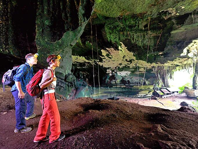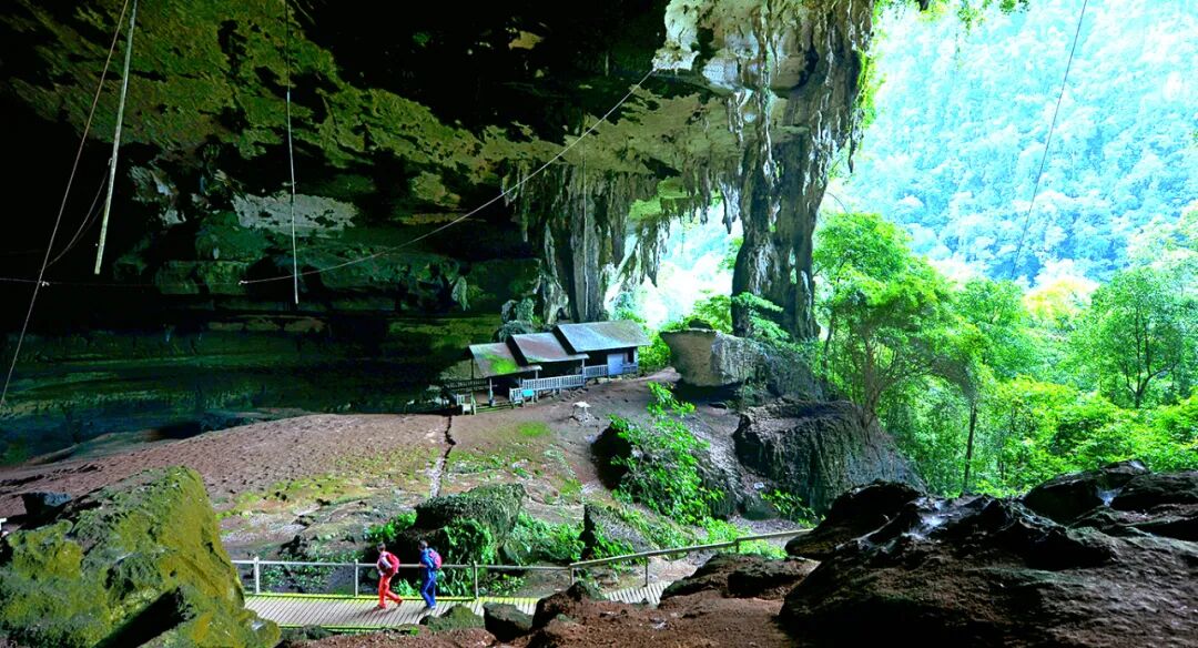 在洞穴里面展示着用作鸟巢庇护所的棚屋,最近在该洞穴的挖掘项目中发现了5个石器工具,使其成为婆罗洲迄今为止最古老的考古遗址。走一小段路就会来到大洞,大洞因其占地10.5公顷而得名。在洞的后面有一条通道,你将进入一个名为巴东的洞穴,阳光透过洞口照射在奇特的岩层上,形成一种独特的摄影氛围。