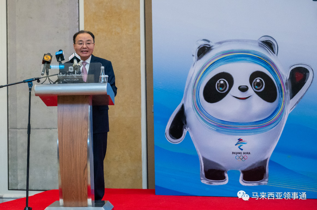 欧阳大使在致辞时表示,北京冬奥与马来西亚非常有渊源。2015年的夏天,国际奥林匹克委员会主席巴赫先生正是在吉隆坡举行的第128届全体会议上宣布,2022年冬季奥运会主办城市是北京。他表示,马来西亚政府、马来西亚奥委会多次在不同场合表达支持北京冬奥会,中方对此表示由衷感谢。全球践行奥林匹克精神的国家和人民正以实际行动证明,举办一届简约、安全、精彩的北京冬奥会是人心所向。中国采取严格有力的防控举措,将最大限度地保护运动员及各相关利益方的健康安全,确保北京冬奥会安全如期举办。马来西亚地处热带,自然冰雪资源极少,但是马来西亚运动员克服困难,积极备战北京冬奥,预祝马来西亚选手在北京冬奥会上取得更好成绩。