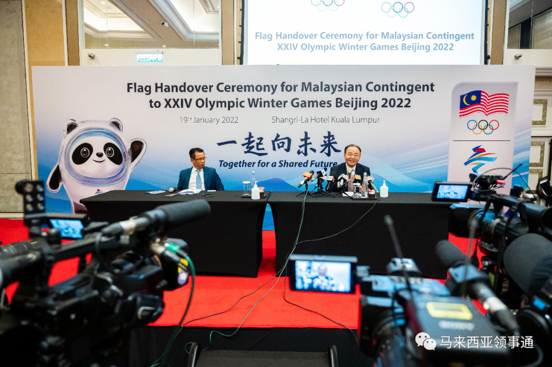 1月19日,马来西亚奥委会北京冬奥代表团授旗仪式在吉隆坡举办,欧阳玉靖大使应邀出席活动并致辞。