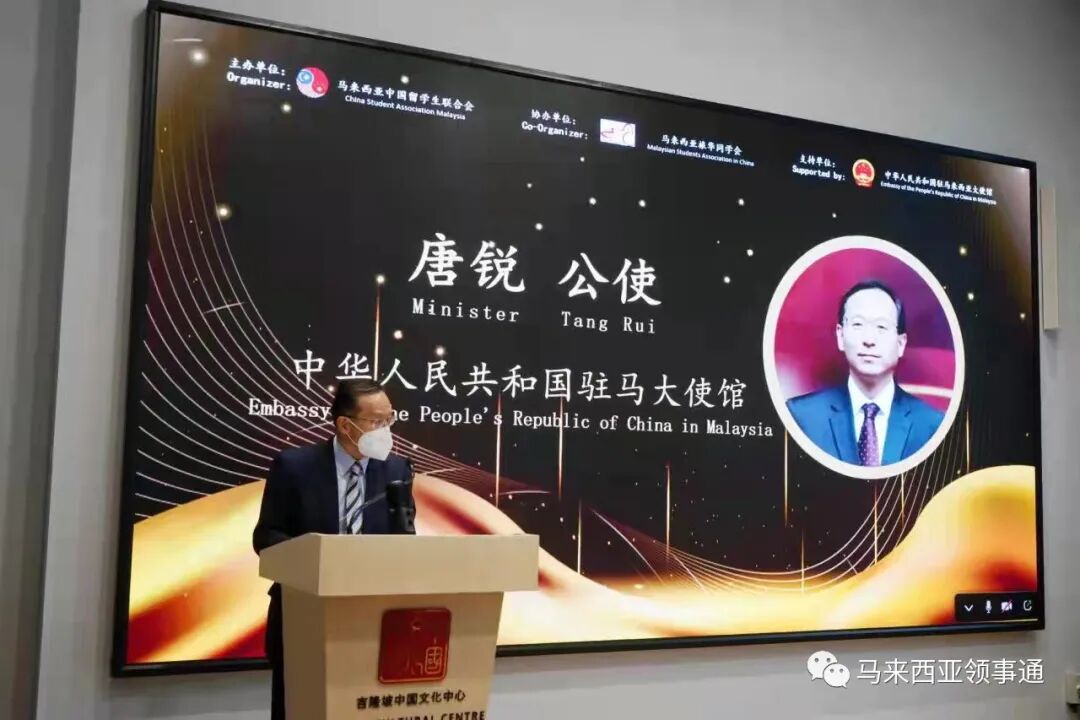 唐公使在致辞中表示,中马两国是好邻居、好朋友、好兄弟,面对新冠疫情挑战,两国人民心连心、手牵手,书写了一个个共克时艰、携手奋斗的佳话。此次大赛通过影像来讲述光阴的故事,能够让人们更加激发同疫情斗争、为命运拼搏的精神,也更加深入地了解历久弥坚的中马友谊。 唐公使表示,正如中国国家主席习近平所言,“青年是整个社会力量中最积极、最有生气的力量,国家的希望在青年,民族的未来在青年。”中国使馆一贯重视推动中马青年交流,推动更多两国青年进一步增进了解与友谊。希望各位青年朋友努力成为中马友好事业的使者和接班人。欢迎更多马来西亚青年朋友在疫情后到中国走走看看,去感受真实、美丽、多元的中国,为中马友好合作不断添砖加瓦。