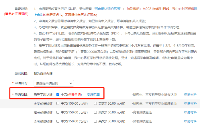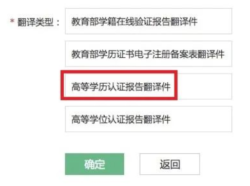 第五步:翻译类型点击“高等学历认证报告翻译件”