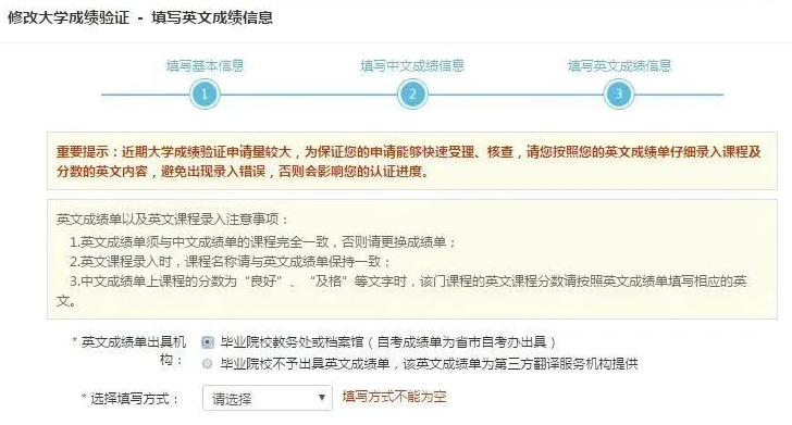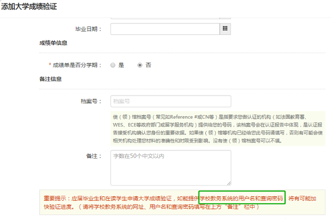 第三步:点击“大学成绩验证:‘中文’和‘英文’