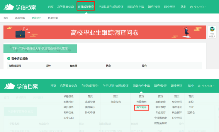 第四步:点击“在线验证报告”,然后点击“翻译成英文