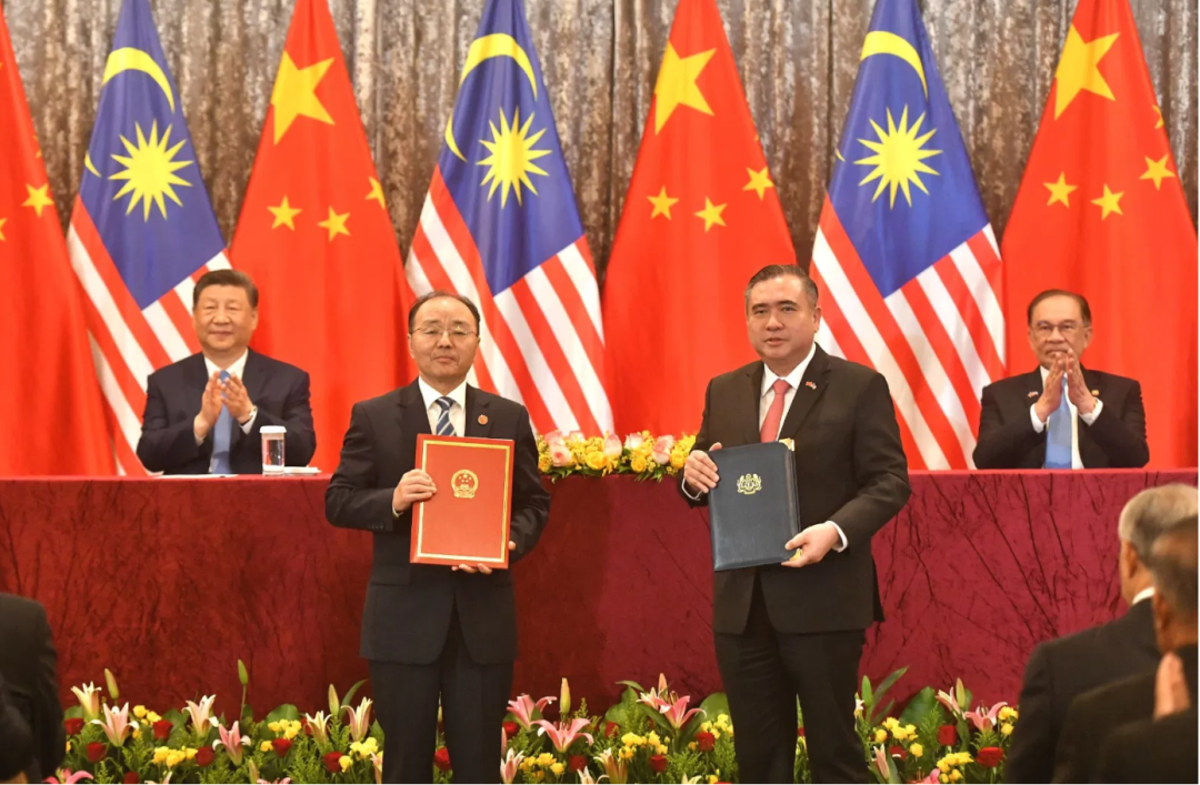 马来西亚首相拿督斯里安华今日与中国国家主席习近平今日举行双边会谈后,共同见证大马内阁部长和中方部长分别代表两国签署谅解备忘录。