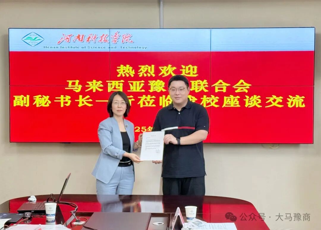 访问期间,马来西亚豫商联合会代表正式向河南科技学院转交了由会长曹峰签署的《感谢信》与《收藏证书》,以感谢贵校在推动中华优秀传统文化走向世界方面所作出的贡献。
