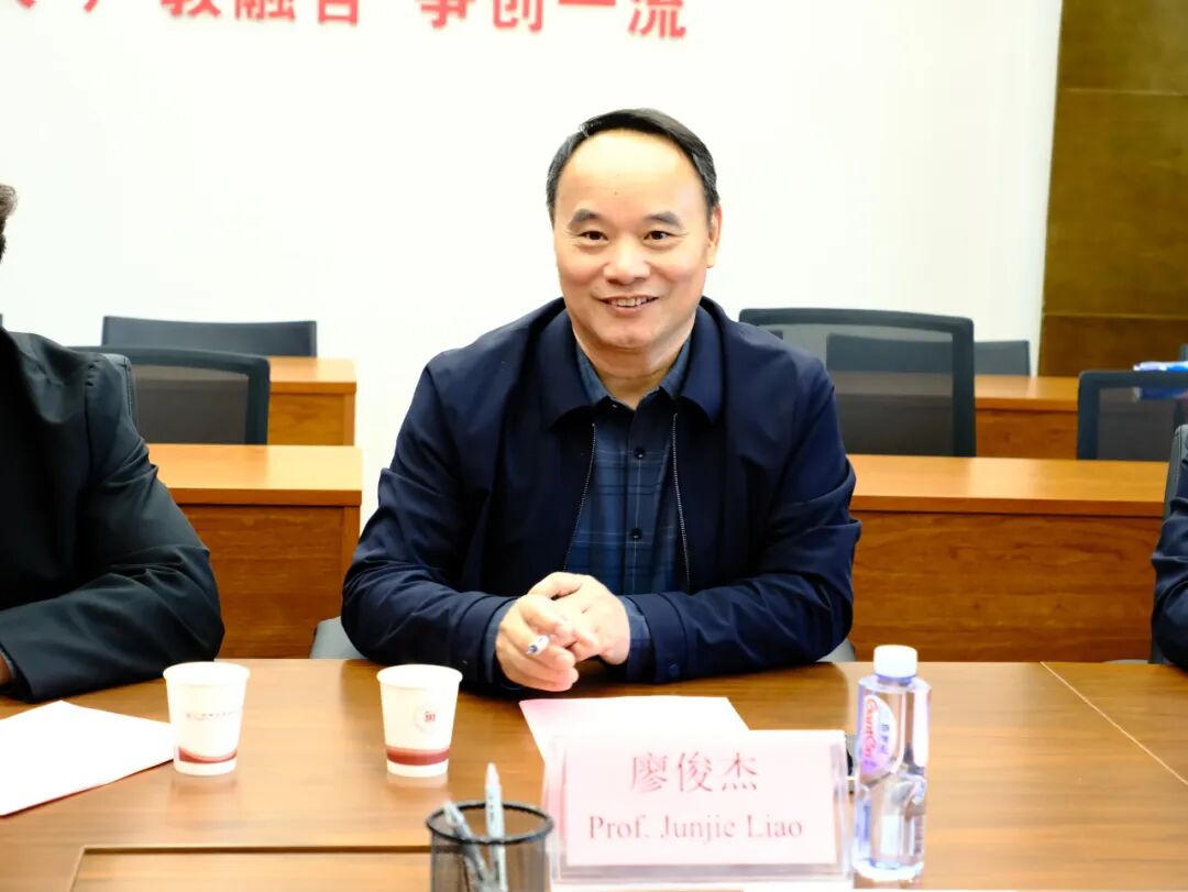 校长廖俊杰表示对大家的到来表示热烈欢迎。并对于我校的地理位置,在校生人数、办学特色、办学理念、专业发展等方面作详细介绍,希望以此为起点,双方在师生互访、联合科研、课程共建等多个维度探索实质性的合作可能,共同为促进知识创新与文化交融贡献力量。