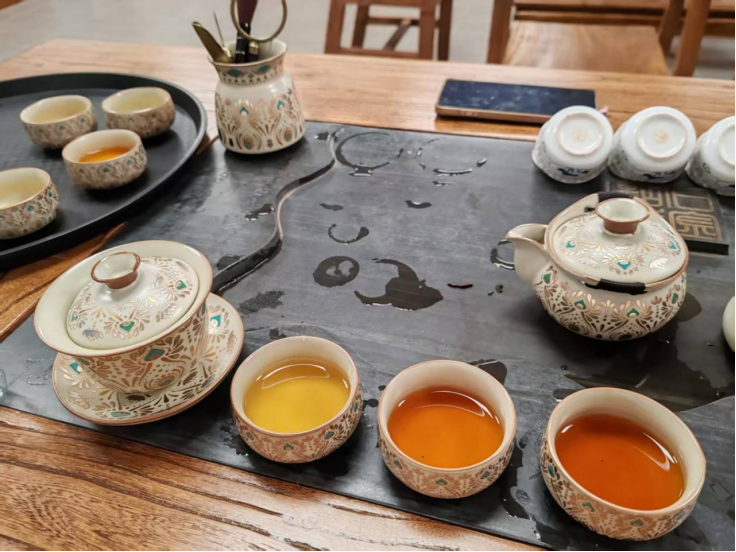 课程特别注重品鉴环节。学员们在不同轮次的冲泡中,尝试分辨茶的浓淡、甜苦、香型,并用中文表达自己的感受,“这个茶很香”“我想喝淡一点的茶”。奉茶礼仪的练习更是让课堂充满温情,大家用中文互道“请用茶”“谢谢”,在举手投足间体会中华文化“和、敬、清、雅”的精神内涵。