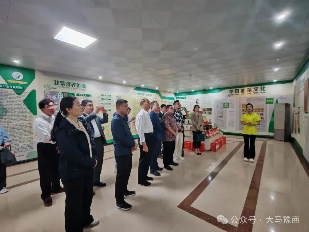 座谈会后,马来西亚侨商代表团一行前往河南久星生物科技研究院有限公司开展实地考察。该公司专注于韭菜全产业链发展,拥有“久星”品牌4大类28个品种,建成占地200亩的“平顶山韭菜科技园”,涵盖种质资源圃、高产攻关田、航天育种实验区等多个功能分区,配备先进的智能温室,推行多种无土栽培模式。侨商们实地参观了园区各功能区域,详细了解企业在韭菜育种、规模化种植、产品深加工等方面的成果,对久星科技在全产业链发展上的创新实践给予高度赞赏。双方围绕健康食品海外推广、技术合作、市场拓展等方面展开深入交流,进一步拓宽了合作思路、凝聚了合作共识。